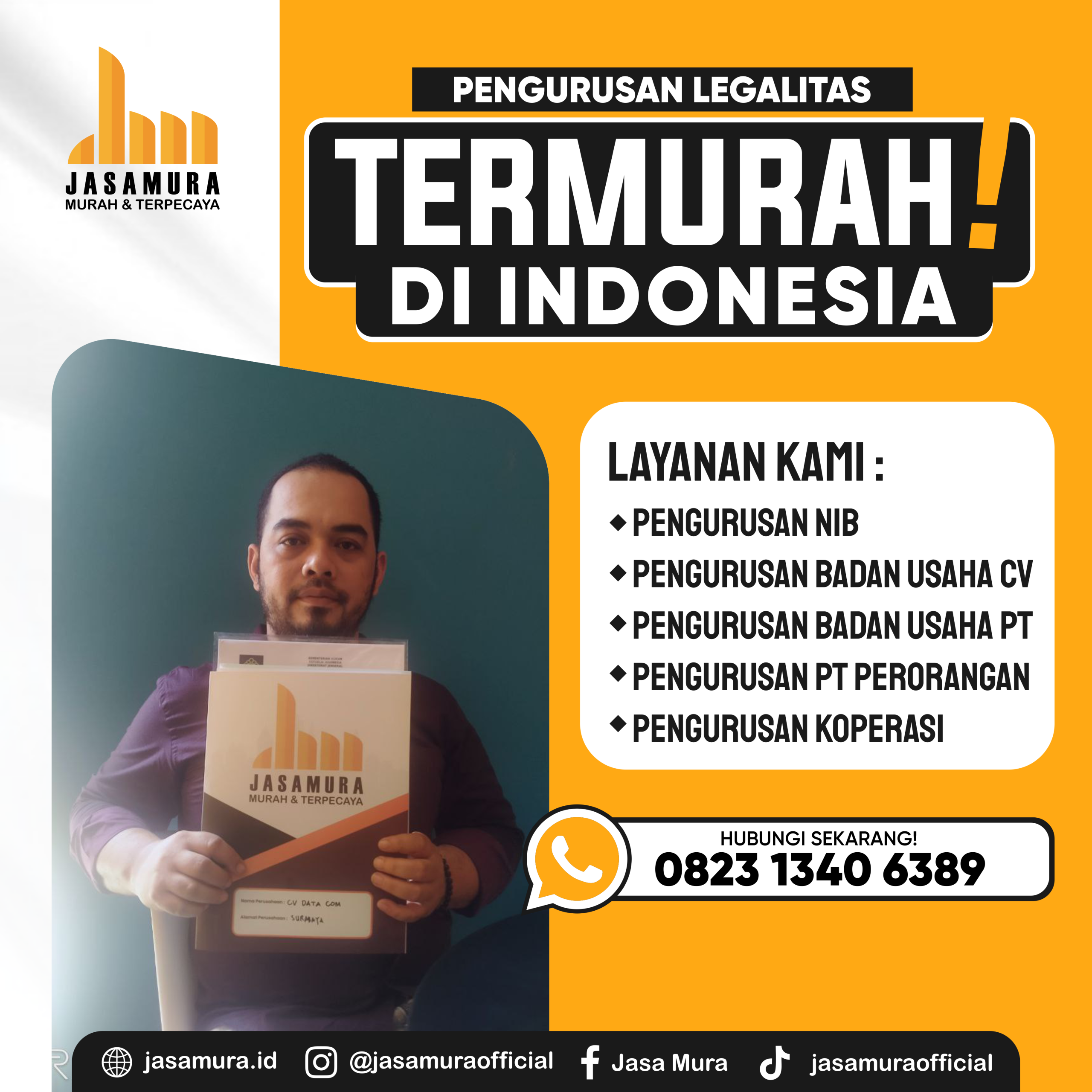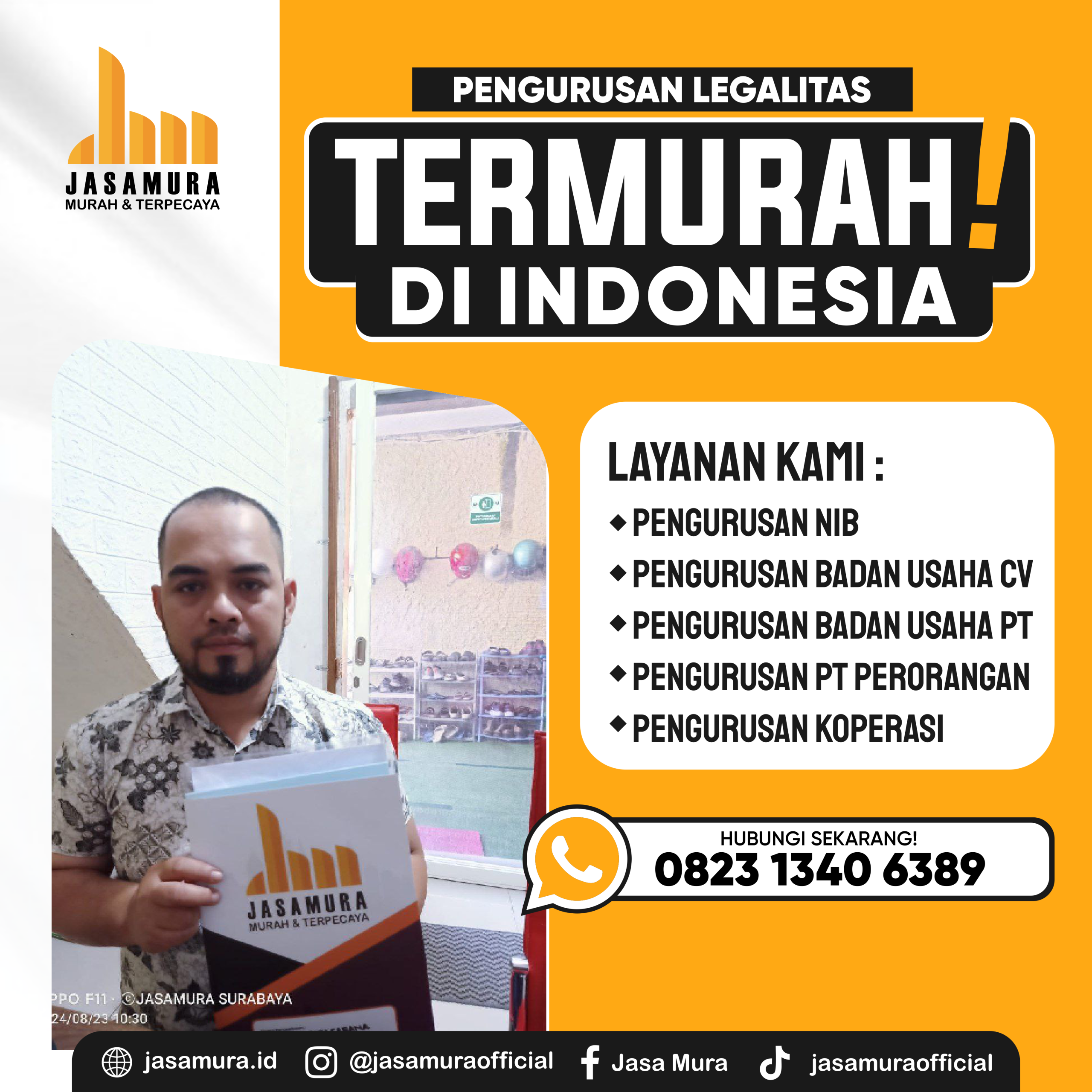 Jasamura Surabaya memberikan solusi Jasa Pengurusan Perizinan Usaha lengkap. Dijamin RESMI, MURAH, TIDAK REPOT dan TANPA KHAWATIR. Kami PROFESIONAL