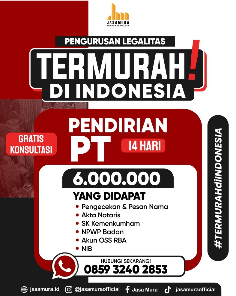 JASAMURA adalah konsultan bisnis yang siap membantu pelaku usaha dalam menyiapkan dokumen usaha, seperti struktur hukum, identitas usaha, dan kebutuhan legal branding seperti nama dan logo.